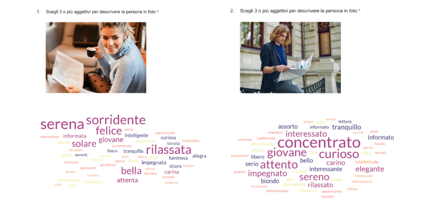 Dalle risposte emerge un pattern chiaro: alle donne vengono attribuite caratteristiche estetiche ed emotive, agli uomini competenza e agency. Il femminile viene ancora usato come insulto ("non fare la femminuccia") mentre il corpo femminile continua ad essere oggetto di giudizio e aspettative sociali ("dovresti curarti di più"). Il 42% del campione non ha riconosciuto alcune frasi come sessiste.